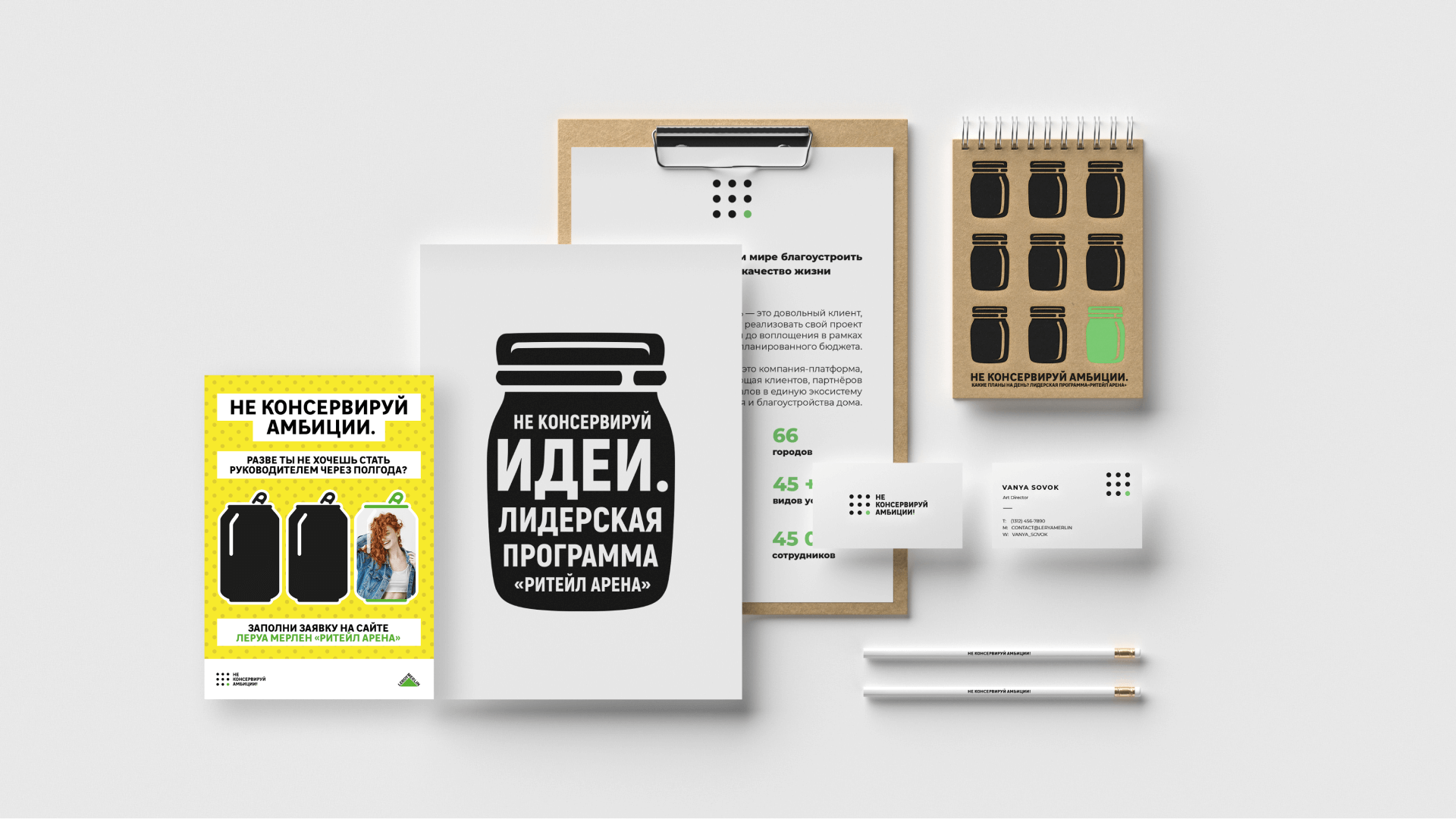 Ключевые тезисы коммуникации строятся по формуле: слоган + вопрос, который заставляет задуматься о до сих пор нереализованных планах. Например, “Не консервируй амбиции. Ты же хотел повышение?”, “Не консервируй амбиции. Ты же говорил, что достоин большего?”
