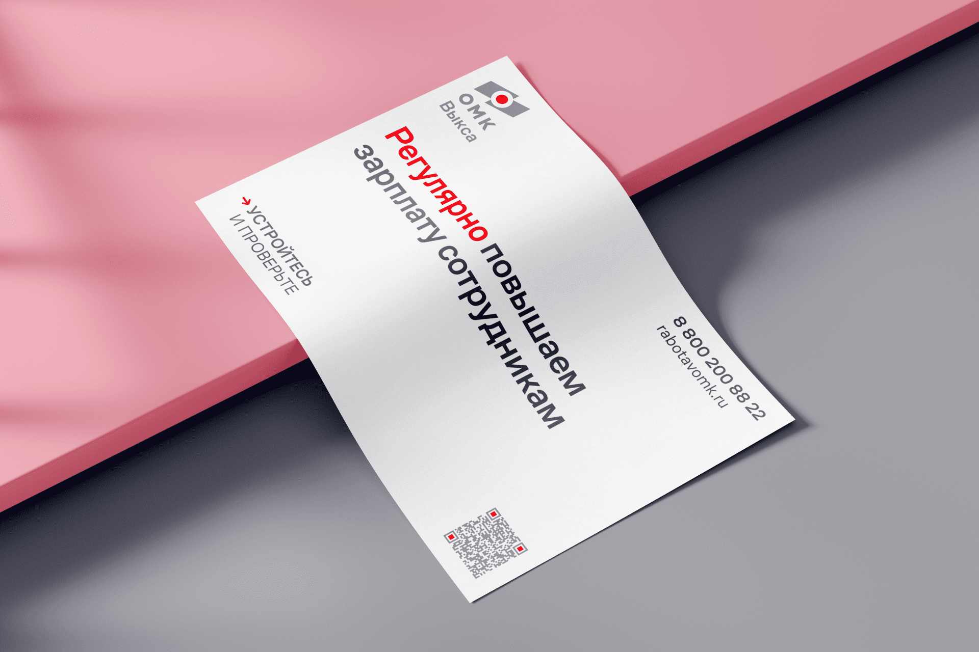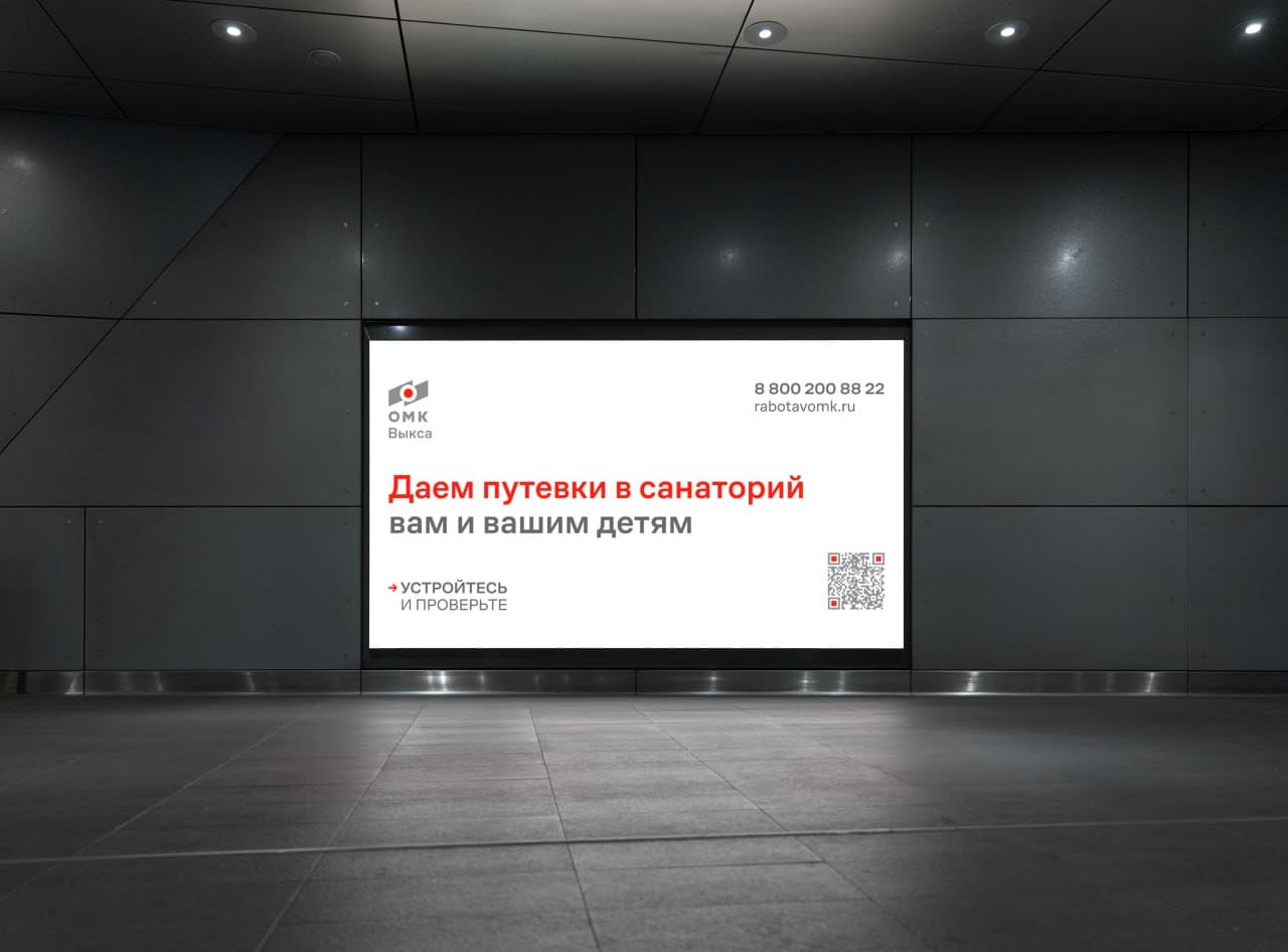 Для кампании мы также сделали рекрутинговый сайт с деталями об ОМК и актуальными вакансиями. На баннерах размещали QR-коды: если в креативе мы рассказывали про соцпакет, код вел на фрагмент сайта, где можно было почитать об этом подробнее.