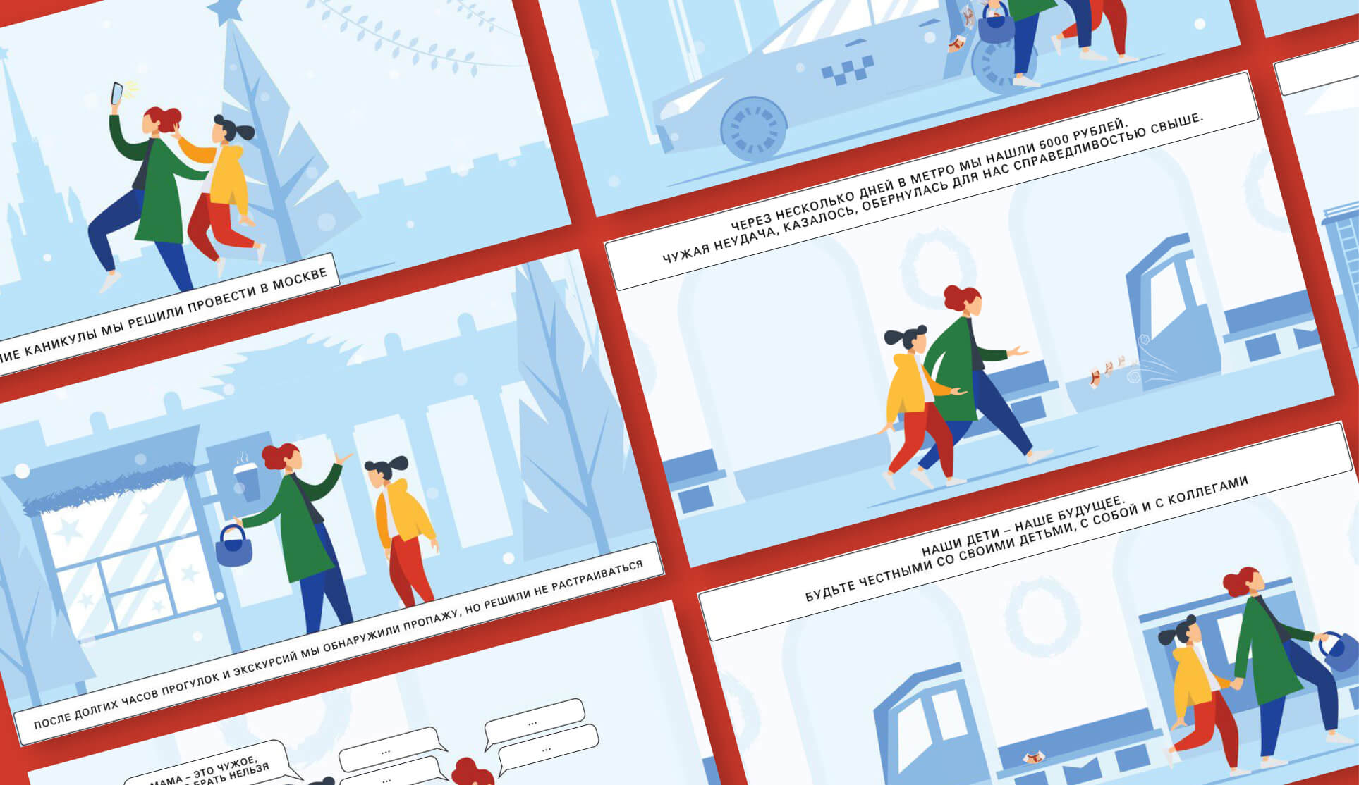 « Для стилистики комикса мы выбрали простой лаконичный дизайн: сбалансированные цвета, бэкграунд без сложных деталей — все это не отвлекает от заданных смыслов и позволяет участникам интерпретировать сюжеты по-своему ».