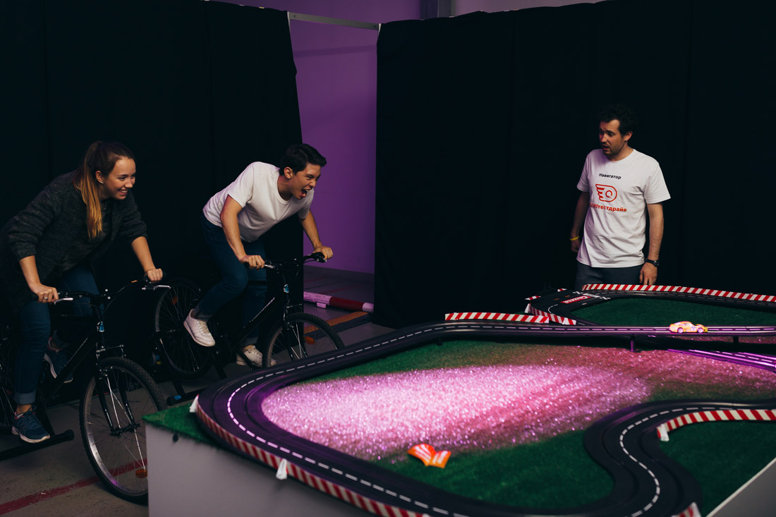 Тест-драйв длился 10 будней по 9 рабочих часов. С точностью механических часов на проекте работало 3 смены рабочей группы и 25 профессиональных актеров. На парковке мы застроили 4 театральных сцены: «Мастерство», «Драйв», «Польза», «Тимплей».