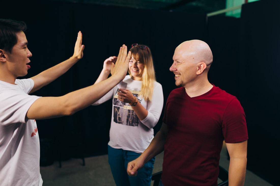 Тест-драйв длился 10 будней по 9 рабочих часов. С точностью механических часов на проекте работало 3 смены рабочей группы и 25 профессиональных актеров. На парковке мы застроили 4 театральных сцены: «Мастерство», «Драйв», «Польза», «Тимплей».