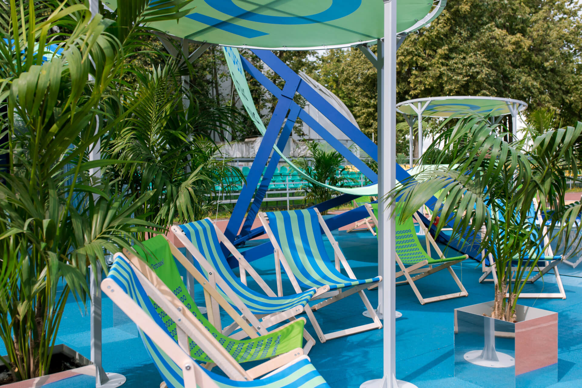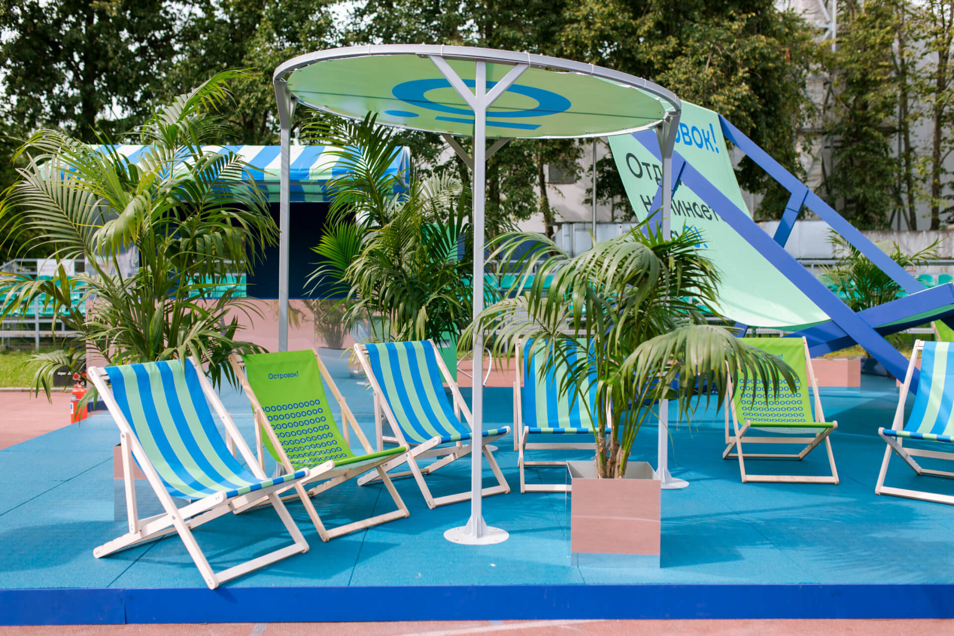 На шумном фестивале появился лаунж-пляж «Островок!» — оазис для перезагрузки. Яркие фирменные цвета, брендированные объекты и уютные зоны отдыха сделали бренд синонимом лёгкости. Главный символ — гигантский лежак-фотомагнит.